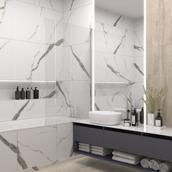 Технологичность и универсальность: Современное производство и технология цифровой печати обеспечивают реалистичность текстур и долговечность. Продукция подходит для отделки любых помещений — от ванных комнат и кухонь до коммерческих пространств.