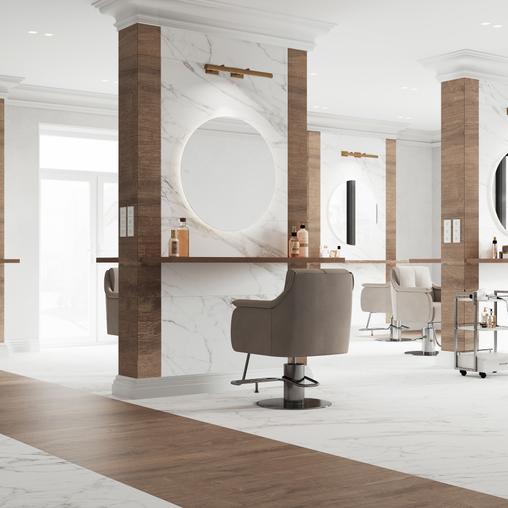 Дизайнерские коллекции на любой вкус: От элегантной имитации натурального мрамора и дерева до смелых геометрических узоров и фактурного бетона. Огромный выбор коллекций позволяет реализовать любой, даже самый смелый, дизайн-проект.