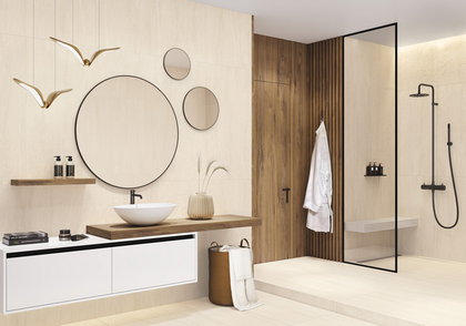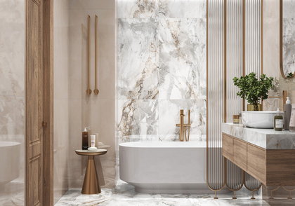 Крупные форматы — максимум эстетики: Продукция в форматах до 60х120 см позволяет создавать бесшовные, монолитные поверхности, которые визуально расширяют пространство и придают интерьеру современный вид.