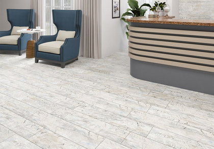 Описание Керамогранит представляет собой текстуру выбеленной сосны с натуральными прожилками, которые подчеркнуты спецэффектом deep-ink. Холодные оттенки плиты — идеальный фон