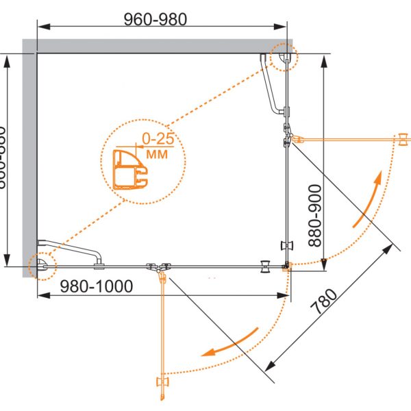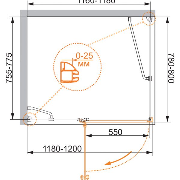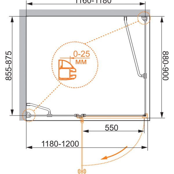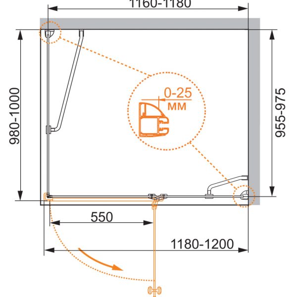 - Типы дверей: Вы можете выбрать уголок с распашными, раздвижными (слайдерными) или складными (гармошкой) дверями в зависимости от планировки и ваших предпочтений.