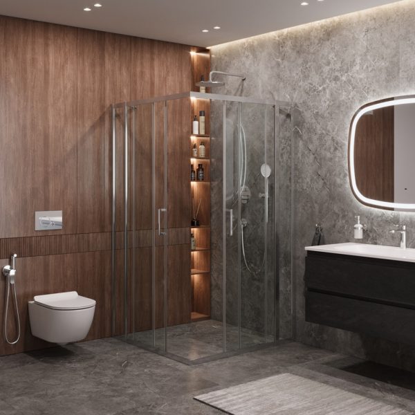 Бескомпромиссное качество: В производстве душевых ограждений используется ударопрочное закаленное стекло толщиной до 10 мм, а для смесителей – высококачественная латунь, что гарантирует исключительную надежность и безопасность.
