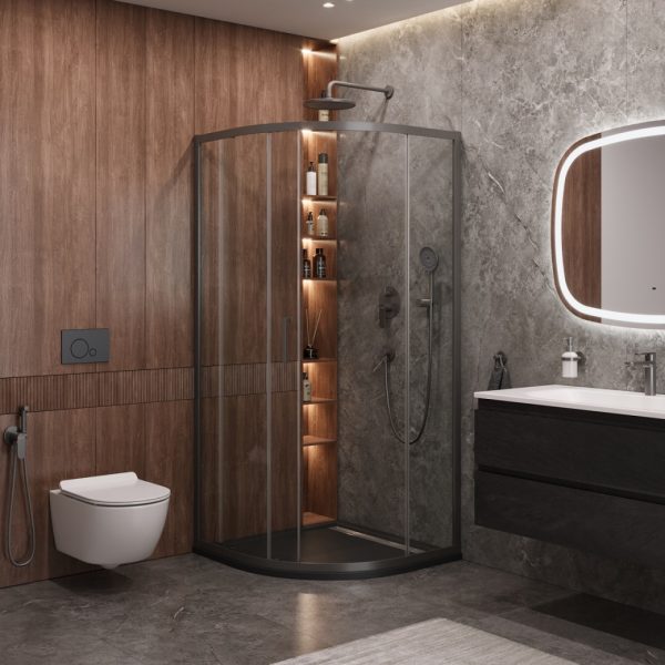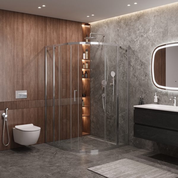 Бескомпромиссное качество: В производстве душевых ограждений используется ударопрочное закаленное стекло толщиной до 10 мм, а для смесителей – высококачественная латунь, что гарантирует исключительную надежность и безопасность.