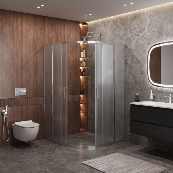 Бескомпромиссное качество: В производстве душевых ограждений используется ударопрочное закаленное стекло толщиной до 10 мм, а для смесителей – высококачественная латунь, что гарантирует исключительную надежность и безопасность.