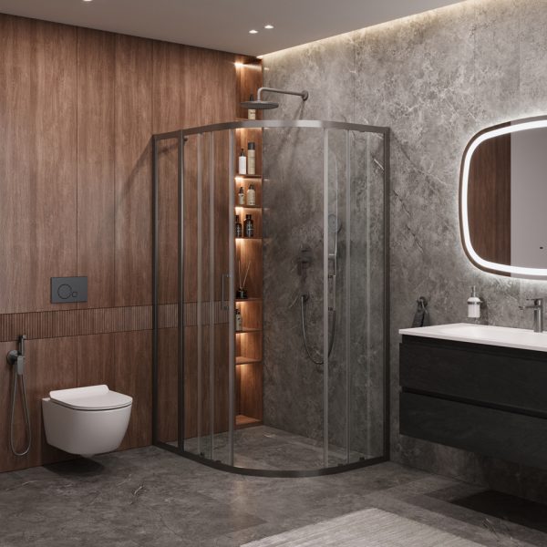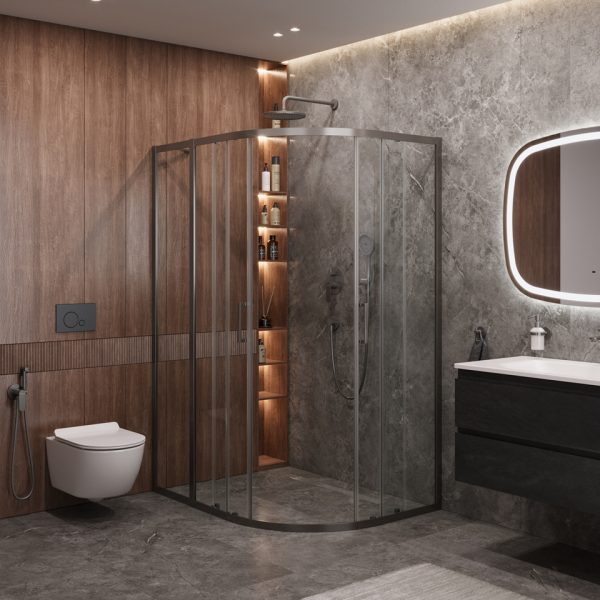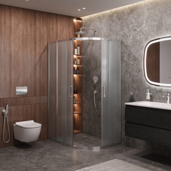 Бескомпромиссное качество: В производстве душевых ограждений используется ударопрочное закаленное стекло толщиной до 10 мм, а для смесителей – высококачественная латунь, что гарантирует исключительную надежность и безопасность.