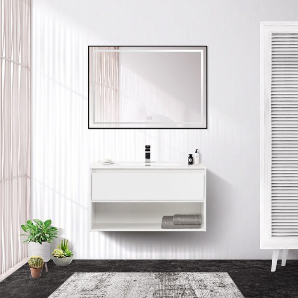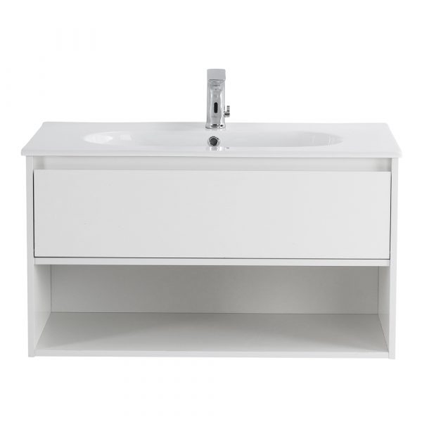 BelBagno — Тумба c раковиной подвесная с одним ящиком и одной открытой полкой KRAFT 100 Bianco Opaco, раковина белая