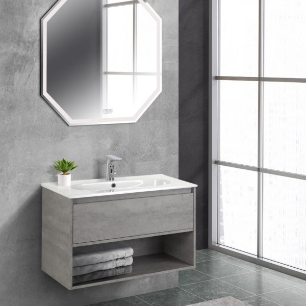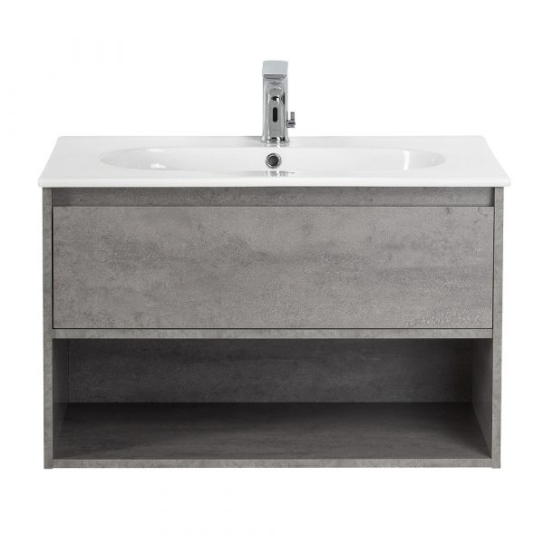 BelBagno — Тумба c раковиной подвесная с одним ящиком и одной открытой полкой KRAFT 80 Cemento Grigio, раковина белая
