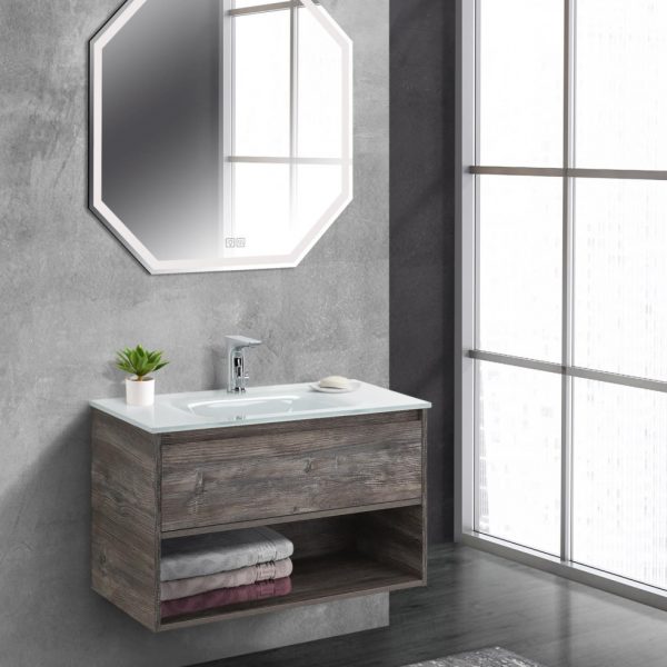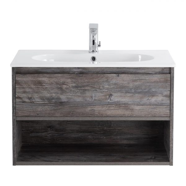 BelBagno — Тумба c раковиной подвесная с одним ящиком и одной открытой полкой KRAFT 80 Pino Pasadena, раковина белая
