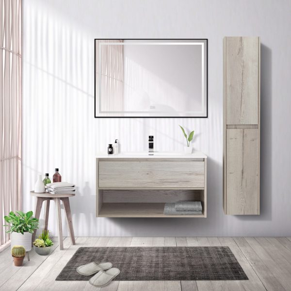 BelBagno — Тумба c раковиной подвесная с одним ящиком и одной открытой полкой KRAFT 90 Rovere Nebrasca Nature, раковина белая