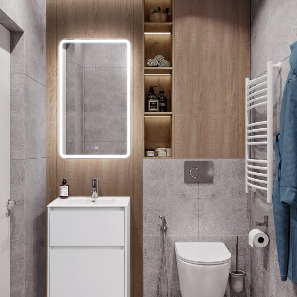 - Зеркала и зеркальные шкафы: Мы предлагаем как лаконичные зеркала, так и многофункциональные зеркальные шкафы со встроенной подсветкой, розетками и полками. Это не только практично, но и визуально расширяет пространство.