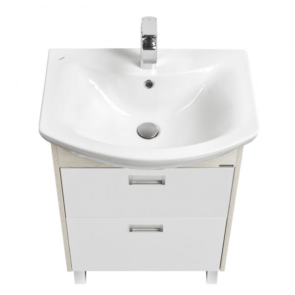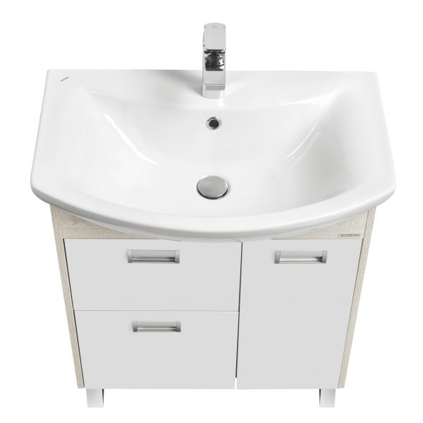 Описание Описание Белые фасады тумбы под раковину Асти 70 идеально сочетаются с боковыми стенками, выполненными в сдержанной древесной отделке Ясень