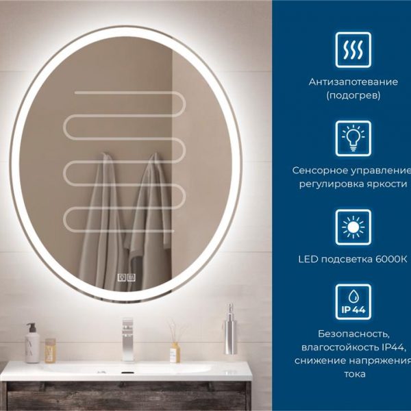 - Сенсорное управление: Включайте подсветку и подогрев легким прикосновением к сенсорной кнопке прямо на поверхности зеркала.