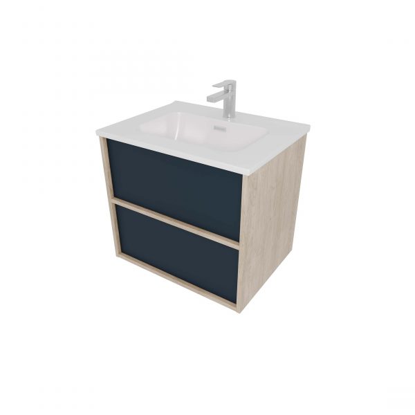 Акватек — Комплект мебели: Тумба ЛИБРА с раковиной 60см, 2 ящика с системой push-to-open, корпус дерево,цвет фасадов белый матовый