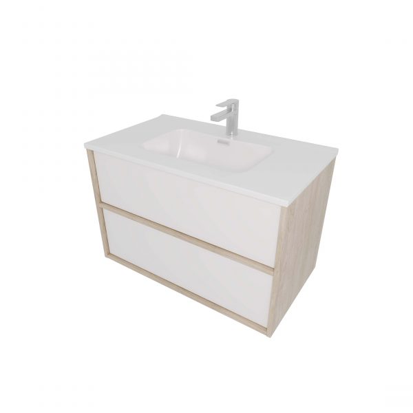 Акватек — Комплект мебели: Тумба ЛИБРА с раковиной 80см, 2 ящика с системой push-to-open, корпус дерево, цвет фасадов белый матовый