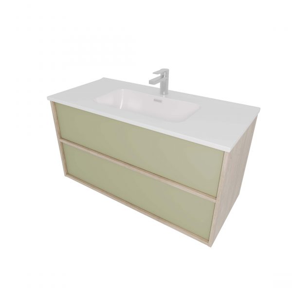 Акватек — Комплект мебели: Тумба ЛИБРА с раковиной 100см, 2 ящика с системой push-to-open, корпус дерево,цвет фасадов шалфей зеленый