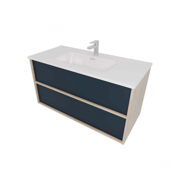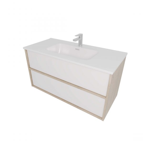 Акватек — Комплект мебели: Тумба ЛИБРА с раковиной 100см, 2 ящика с системой push-to-open, корпус дерево,цвет фасадов белый матовый