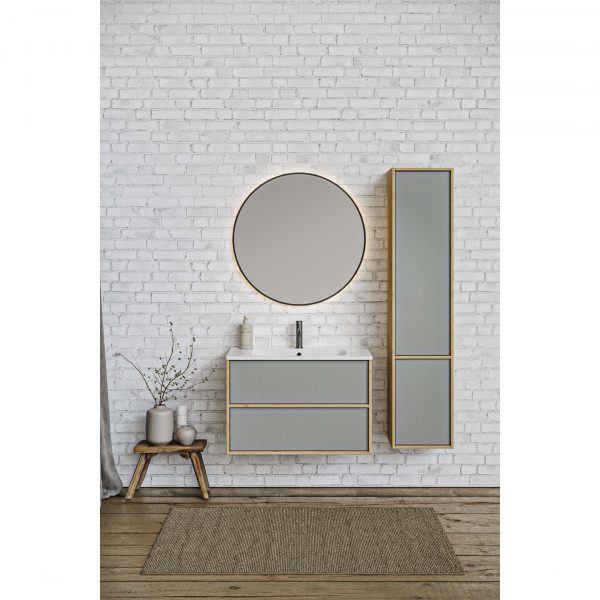 Акватек — Комплект мебели: Тумба ЛИБРА с раковиной 80см, 2 ящика с системой push-to-open, корпус дерево,цвет фасадов шалфей зеленый