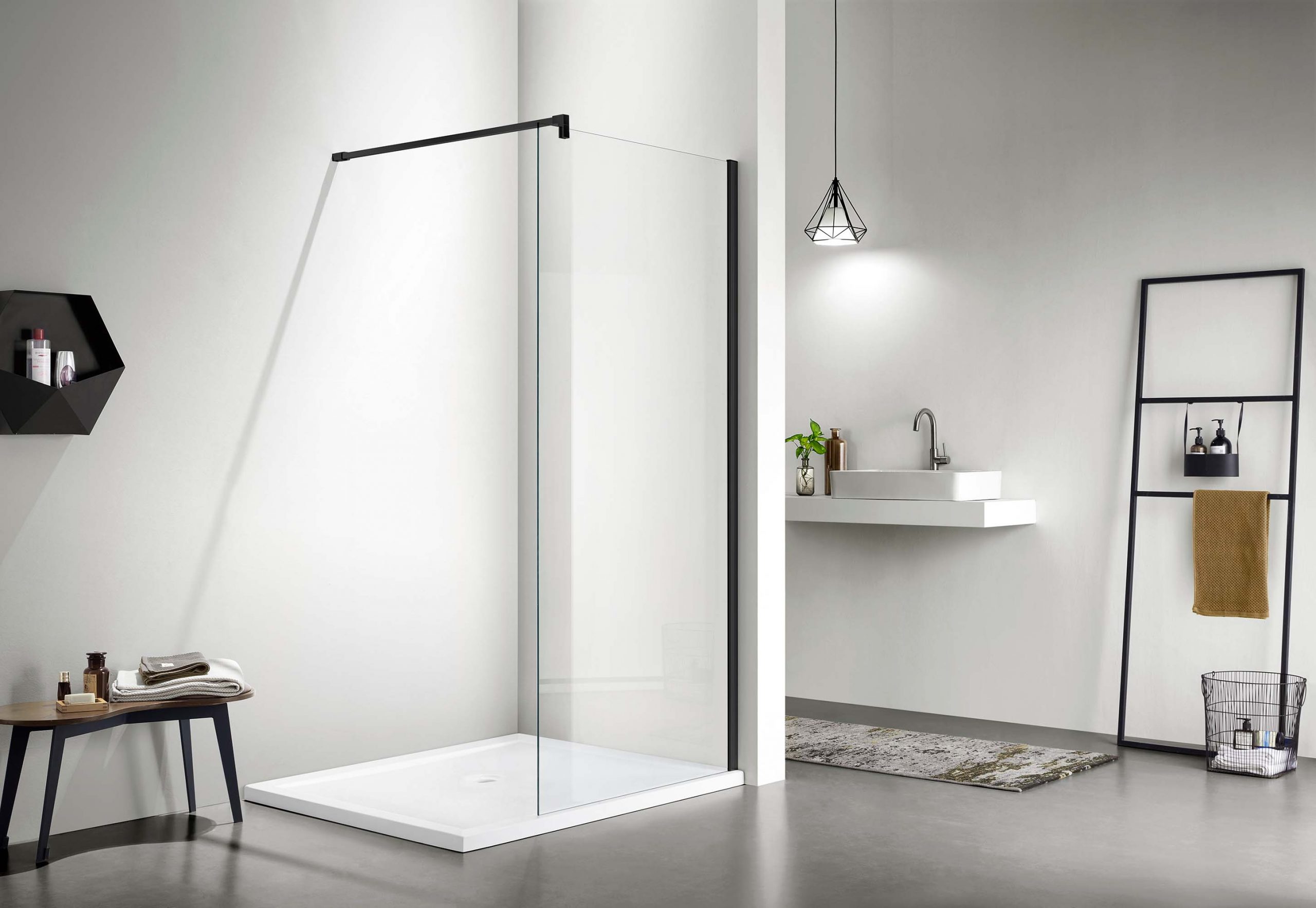 Уникальное решение для защиты ванной комнаты от брызг. Бескаркасное стекло душевой перегородки walk-in расширяет пространство и добавляет ему элегантности. Душевые