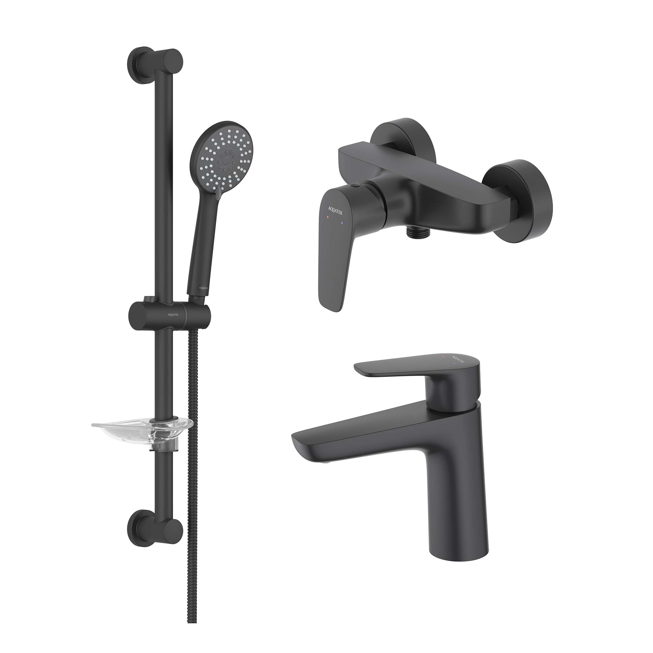 Главная Сантехника Смесители Акватек — Комплект для ванны Aquatek Бетта AQ1131MB 3 в 1 AQ1110MB+AQ1160MB+AQ2013MB