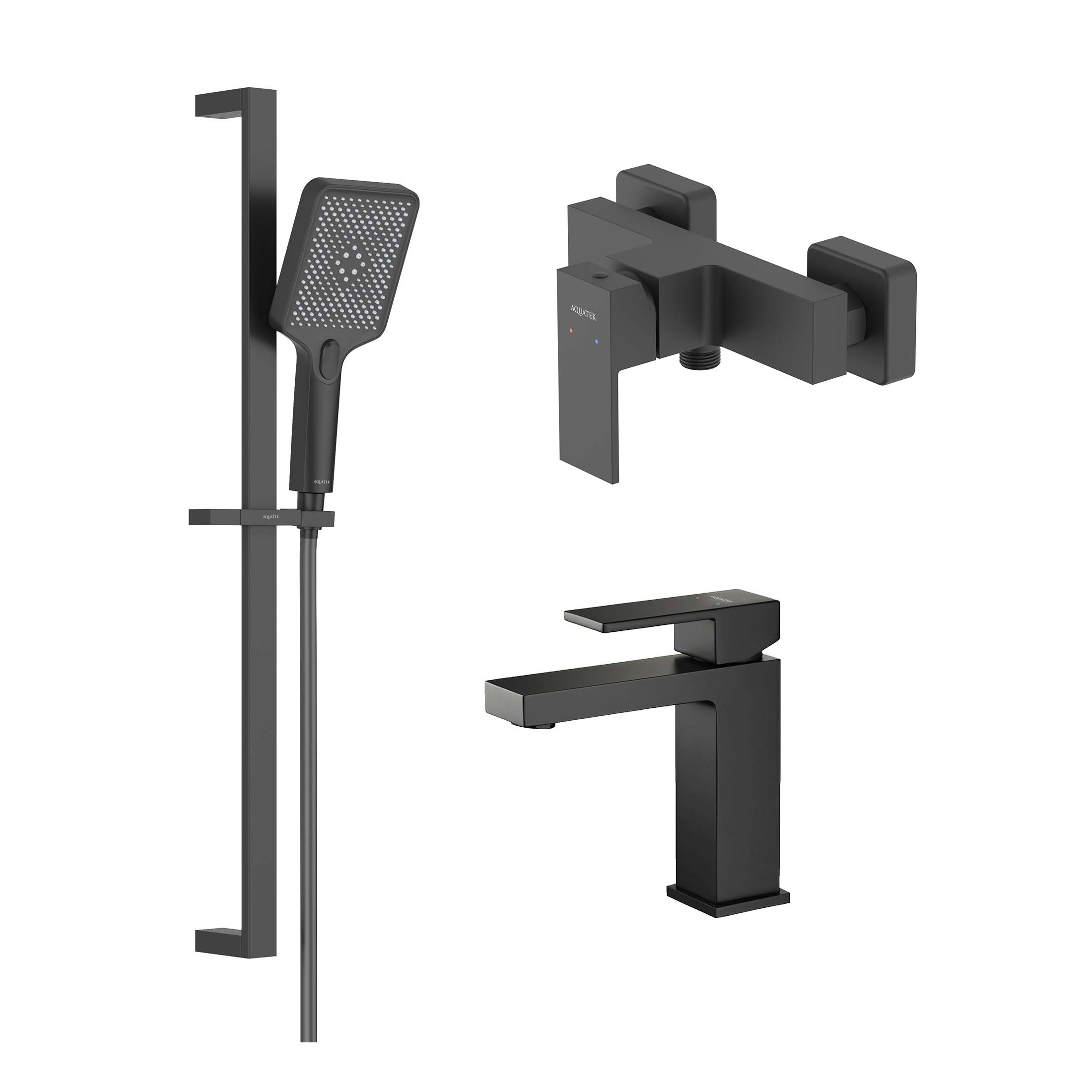 Главная Сантехника Смесители Акватек — Комплект для ванны Aquatek Либра AQ1631MB 3 в 1 AQ1610MB+AQ1660MB+AQ2019MB