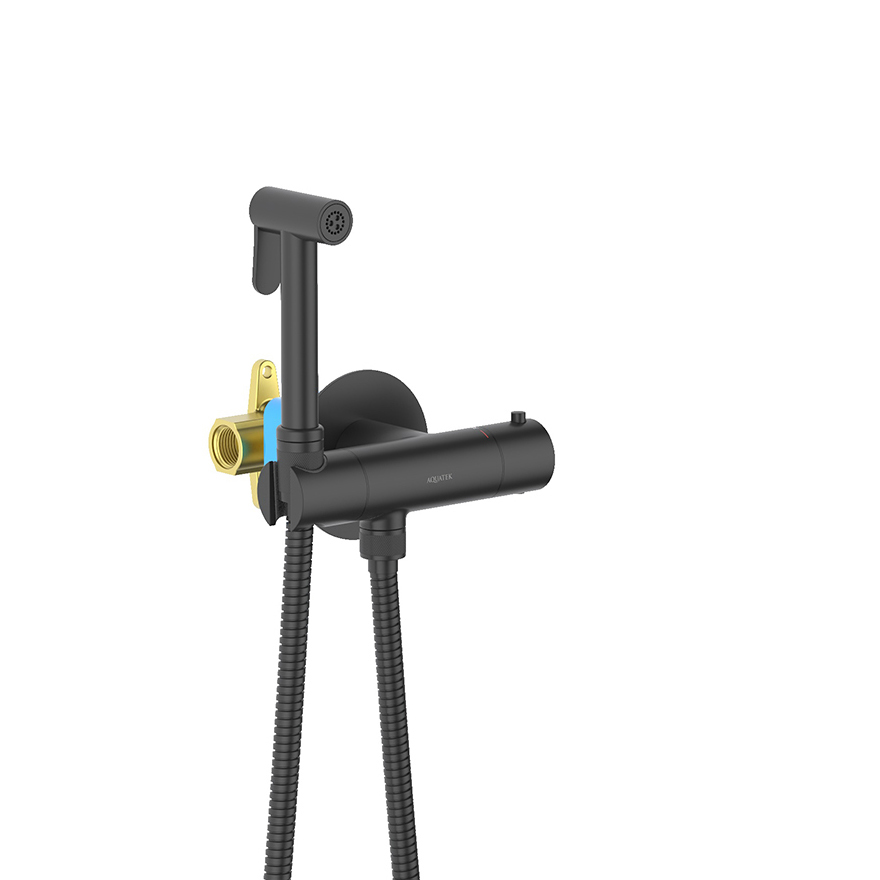 Акватек — Комплект для гигиенического душа термостатический встроенный (смеситель + гигиеническая лейка + шланг) AQUATEK, матовый черный AQ1027MB Оберон