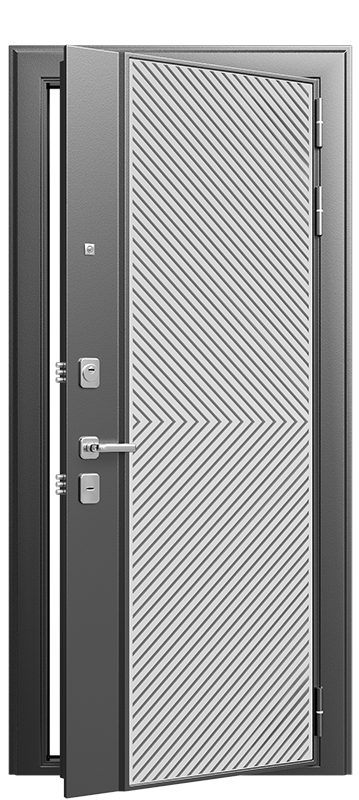 Основательность конструкции представлена трехконтурным притвором, усиленной цельногнутой рамой короба (110 мм) и прочностью усиленного полотна (100 мм), обеспечивая жёсткость конструкции в целом. Трехконтурный притвор и резиновый уплотнитель способствует наиболее плотному прилеганию полотна к коробу, герметичности двери, защиту от сквозняков и посторонних шумов, создавая максимально комфортные условия проживания. Металлический эксцентрик, противосъемные ригели, петли на опорном подшипнике с нержавеющим штоком — гарантируют высокую калибровку закрывания двери, плавность запирания, запас прочности и защиту от провисания при эксплуатации и безупречность работы замков.