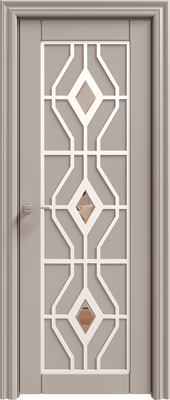 Фрезерованная панель в центре полотна – акцентная деталь, покрывающаяся исключительно Эмалью. Благодаря огромной вариативности цветов эмали на выбор из каталогов RAL, Вы можете создать различные цветовые сочетания полотна и узора. За счет возможности применения подобных дизайнерских решений, данные модели отлично впишутся по стилю во многие интерьеры – от воздушной современной классики до брутального стиля – лофт.