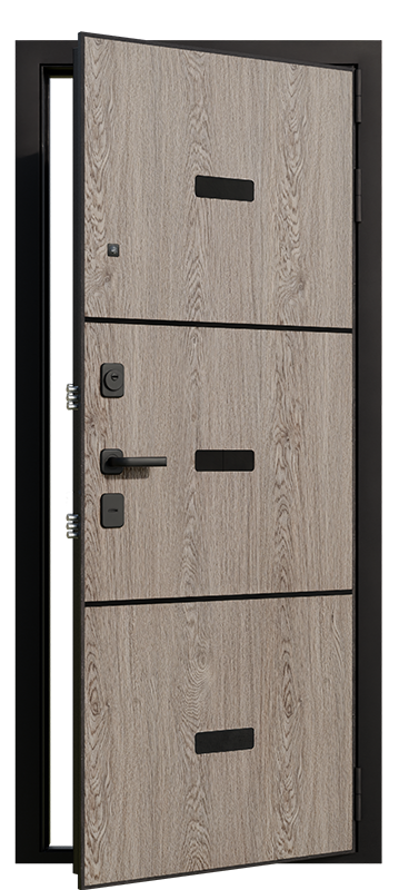 Серия Neo – надежная входная дверь, с электронным биометрическим замком Philips, открываемая в одно касание. Также предусмотрена комплектация замками – Кале, Гардиан.