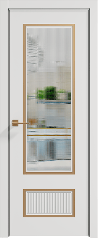 Модели сочетают в своем дизайне элегантные рифленые поверхности с латунным декором. Эта комбинация создает утонченный и роскошный внешний вид, придающий дверям особый характер. Латунная вставка, бликующая на свету, добавляет дверям не только стильный акцент, но и создает мягкую подсветку, что придает интерьеру уюта и атмосферы.