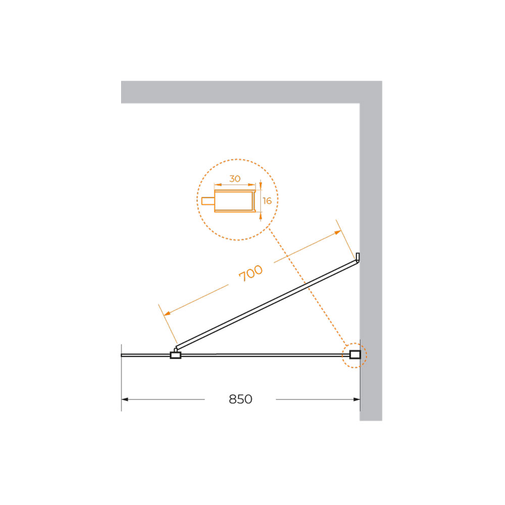 Изделия доступны к заказу с профилем и угловым кронштейном в отделке хром и черный.