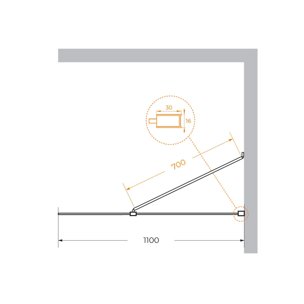 Изделия доступны к заказу с профилем и угловым кронштейном в отделке хром и черный.