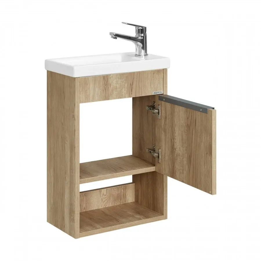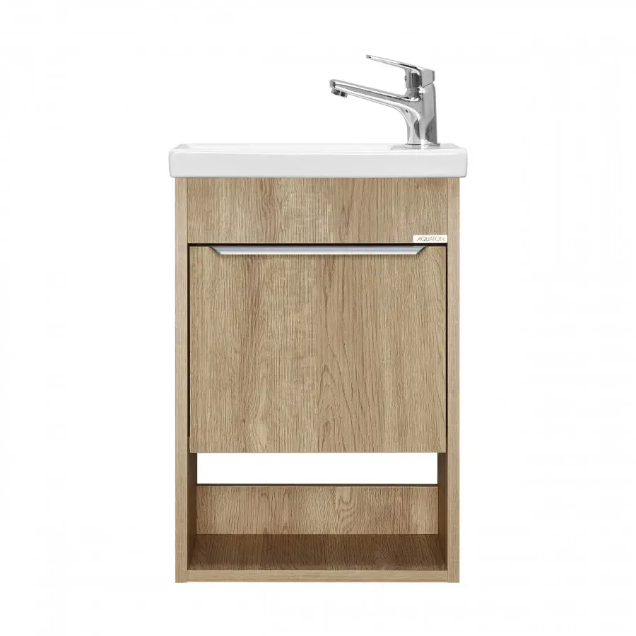 Тумба с раковиной AQUATON Хоуп — идеальное решение для ванной комнаты, гармонично сочетающее минимализм и практичность. Корпус и фасад выполнены из влагостойкой ЛДСП в оттенке орех полиэфирной краской ультрафиолетового отверждения. В комплект входит раковина Santek Миранда 40, что избавляет от необходимости подбирать сантехнику отдельно. Удобная ручка добавляет нотку изысканности, а открытая ниша предоставляет возможность организовать пространство так, как вам удобно — будь то размещение любимых аксессуаров или необходимых принадлежностей. Комплект поставляется в разобранном виде.