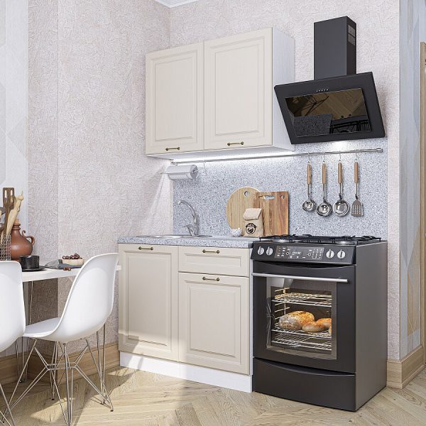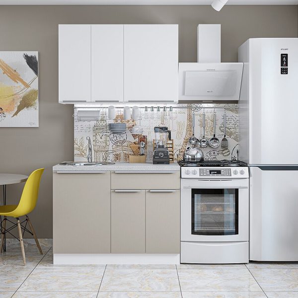Характеристики кухни Размер (В*Ш*Г), мм2140*1200*600 Цвет каркасовБелый Материал каркасовЛДСП Цвет фасадовКашемир Материал фасадовМДФ Отделка фасадовПленка ПВХ. Полезная информацияВнимание! Ручка в