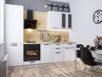 Характеристики кухни Размер (В*Ш*Г), мм2140*800*600 Цвет каркасовБелый Материал каркасовЛДСП Цвет фасадовWotan Oak 2S/Temple Stone 2S Материал фасадовЛДСП Толщина кромки, мм1