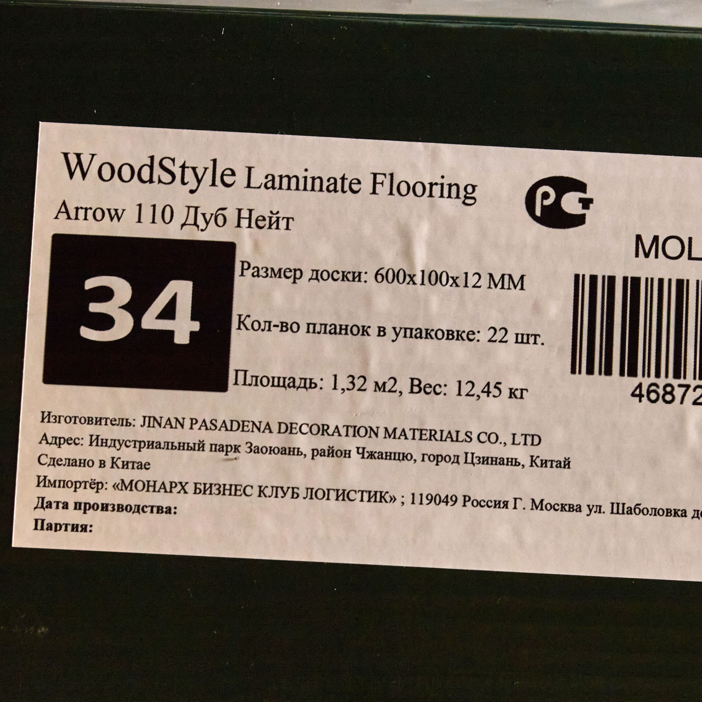 Категория “ламинат” и класс износостойкости 34 гарантируют его долговечность и надежность. Толщина доски 12 мм обеспечивает дополнительную звуко- и теплоизоляцию.