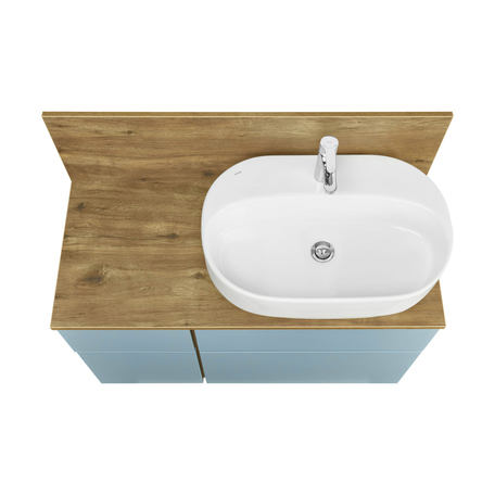 Столешница из влагостойкой ламинированной ДСП в декоре Дуб Рустикальный для тумбы Мишель 100. Данная столешница универсальна и подойдет под несколько накладных раковин. В комплекте со столешницей предусмотрена также задняя панель, которая защитит пространство между тумбой и стеной от попадания влаги.