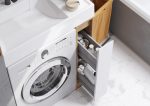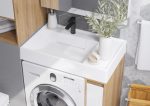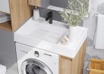 Тумба Лондри под стиральную машину выполнена из влагостойкой ламинированной плиты в древесной отделке. Корпус тумбы и фасад приобретаются отдельно. Тумбы комплектуются фасадами как с такой же древесной текстурой, так и в универсальном белом глянцевом цвете – это позволяет выбрать модель тумбы в соответствии с личными предпочтениями, создав наиболее удачное решение для конкретного интерьера ванной комнаты. Более того, при желании в одной тумбе можно совместить корпус и фасады в двух разных по оттенку древесных декорах. За фасадом тумбы скрывается удобная бутылочница. Открытие тумбы Лондри осуществляется за фасад благодаря эргономичному выпилу под углом. Ящик состоит из двух отделений: верхнего и нижнего. Каждое отделение ящика выдерживает нагрузку до 20 кг. Тумба комплектуется раковиной Рейн 80 из прочного литого мрамора. Раковина приобретается отдельно. Компактный размер данного комплекта подойдет для небольших ванных комнат и обеспечит место для хранения необходимых предметов и аксессуаров. Дополнительно к тумбе можно приобрести шкаф-колонну Лондри и зеркальный шкаф Лондри 80.