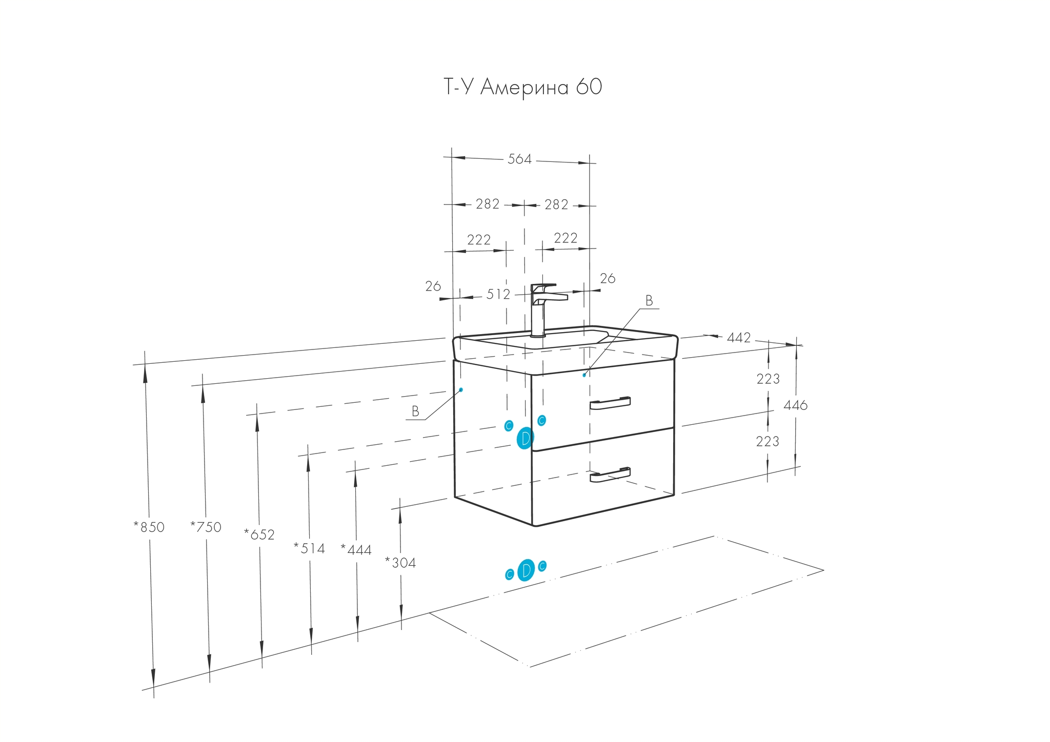 Высота тумбы с раковиной +-5мм(если нет опор)540 мм