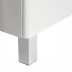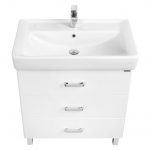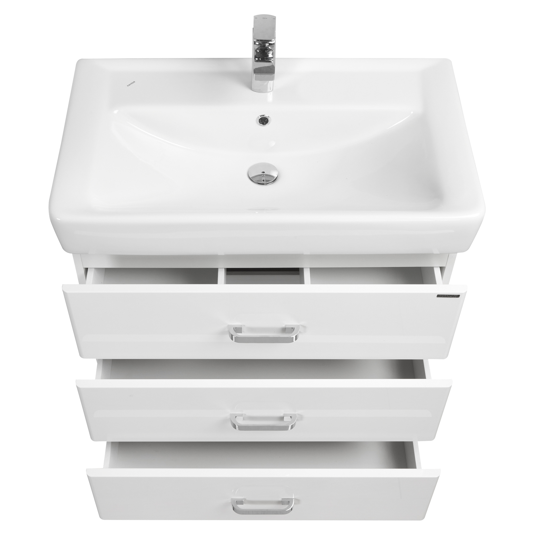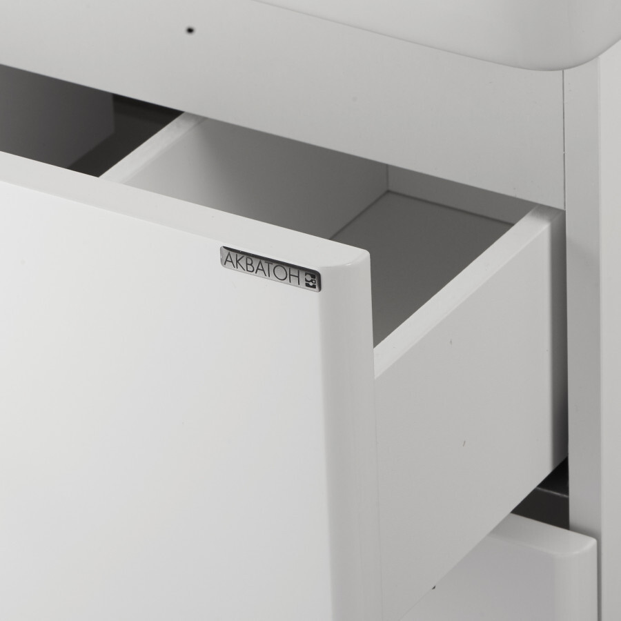 Современная лаконичная модель тумбы AQUATON Америна 70 М с тремя ящиками имеет ширину 70 см и выполнена в белоснежном глянцевом цвете. Корпус изготовлен из влагостойкой ЛДСП, а фасад — из высококачественной МДФ. Модификация на двух изящных ножках удобна для ванных комнат, где нельзя использовать подвесную мебель. Направляющие нижнего крепежа обеспечивают жёсткое и надежное крепление ящиков, а встроенные доводчики гарантируют их бесшумное и плавное закрывание. Дополнительно организовано нижнее подключение труб водоснабжения и канализации. Корпус и фасады покрыты полиэфирной краской ультрафиолетового отверждения, обеспечивающей дополнительную защиту от влаги.