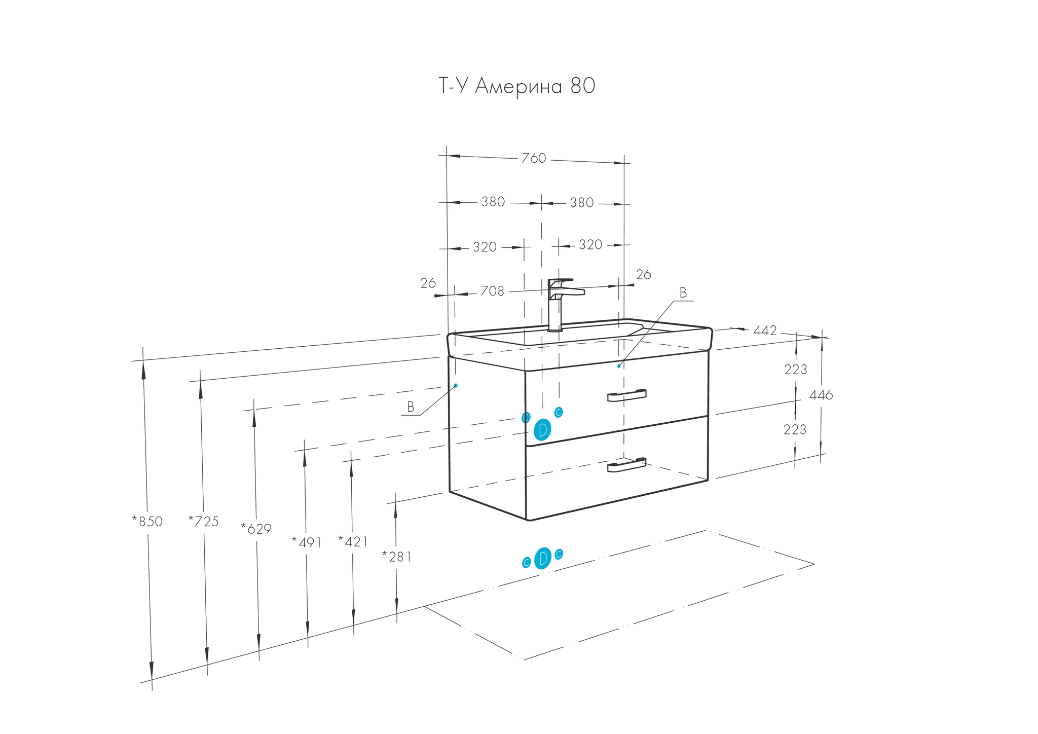 Высота тумбы с раковиной +-5мм(если нет опор)565 мм