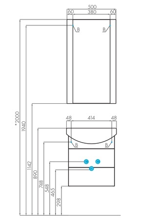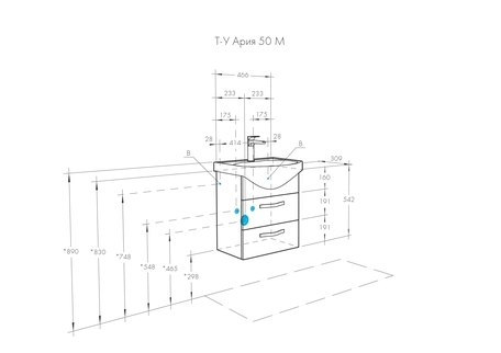 Высота тумбы с раковиной +-5мм(если нет опор)595 мм