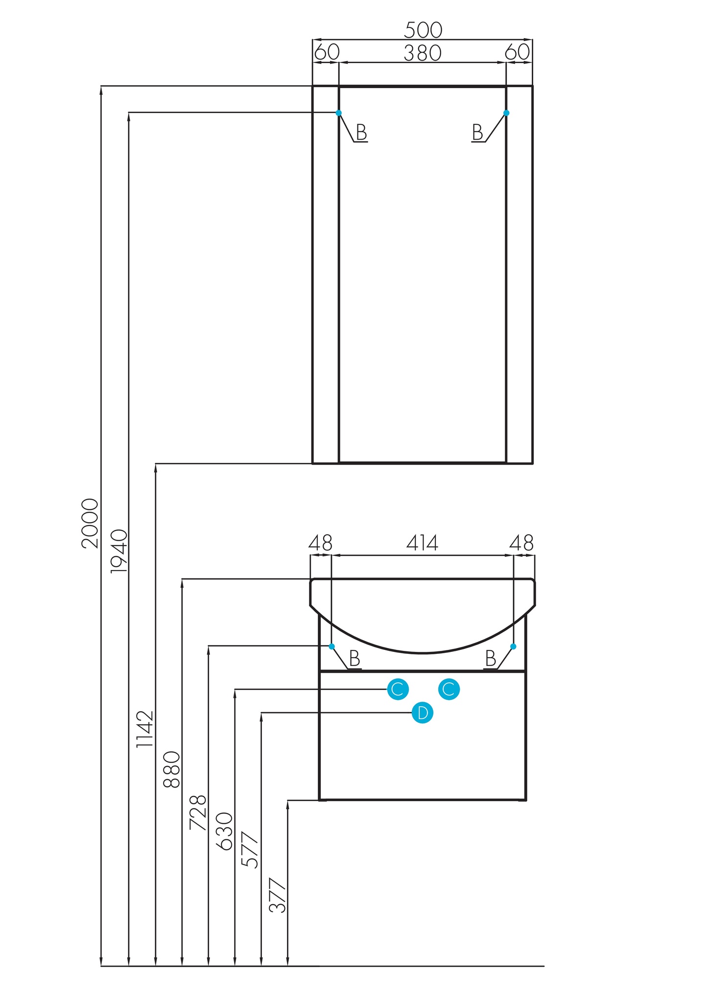Высота тумбы с раковиной +-5мм(если нет опор)500 мм