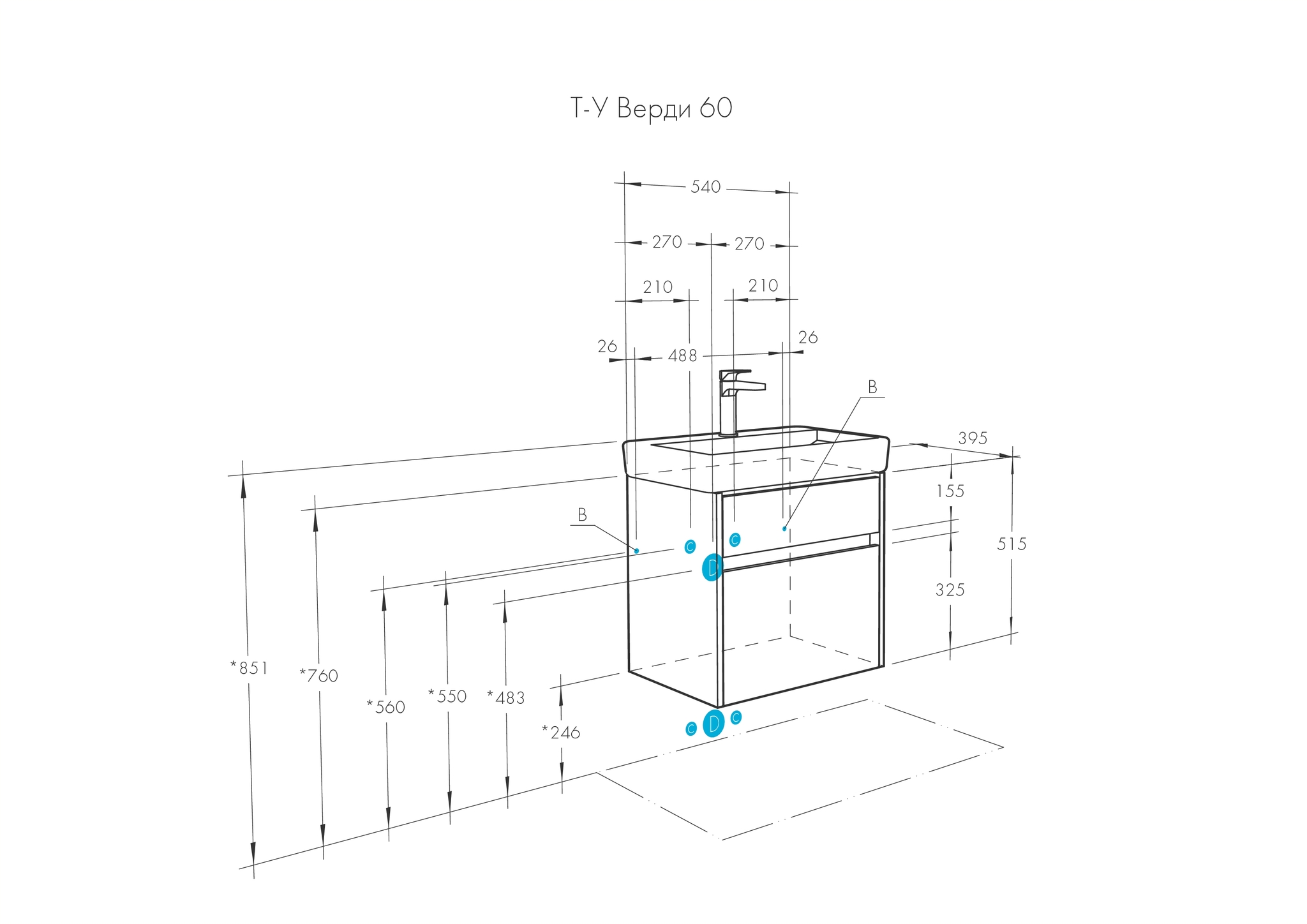 Высота тумбы с раковиной +-5мм(если нет опор)605 мм