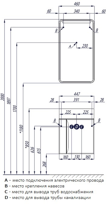 Высота тумбы с раковиной +-5мм(если нет опор)585 мм