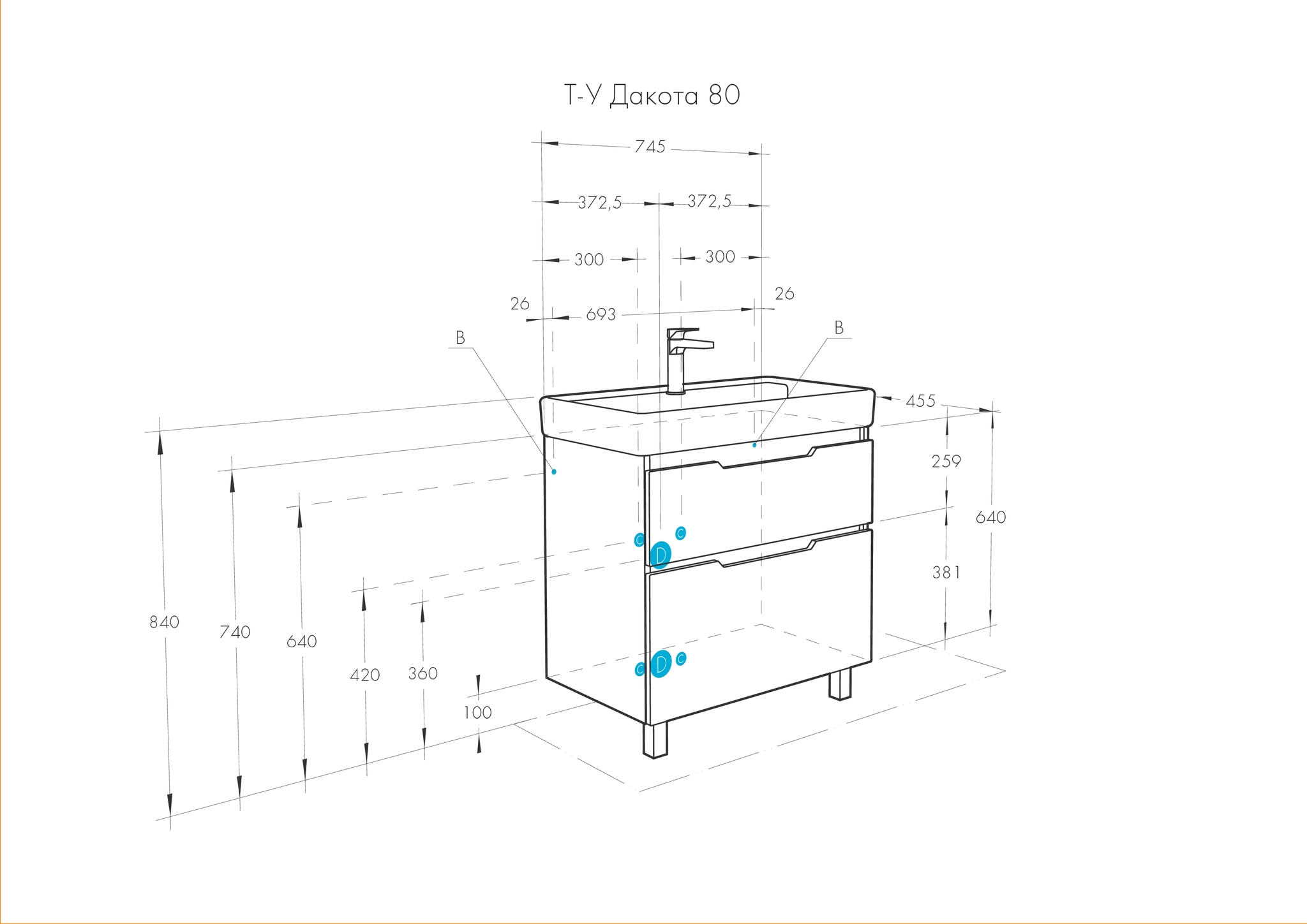 Высота тумбы с раковиной +-5мм(если нет опор)740 мм