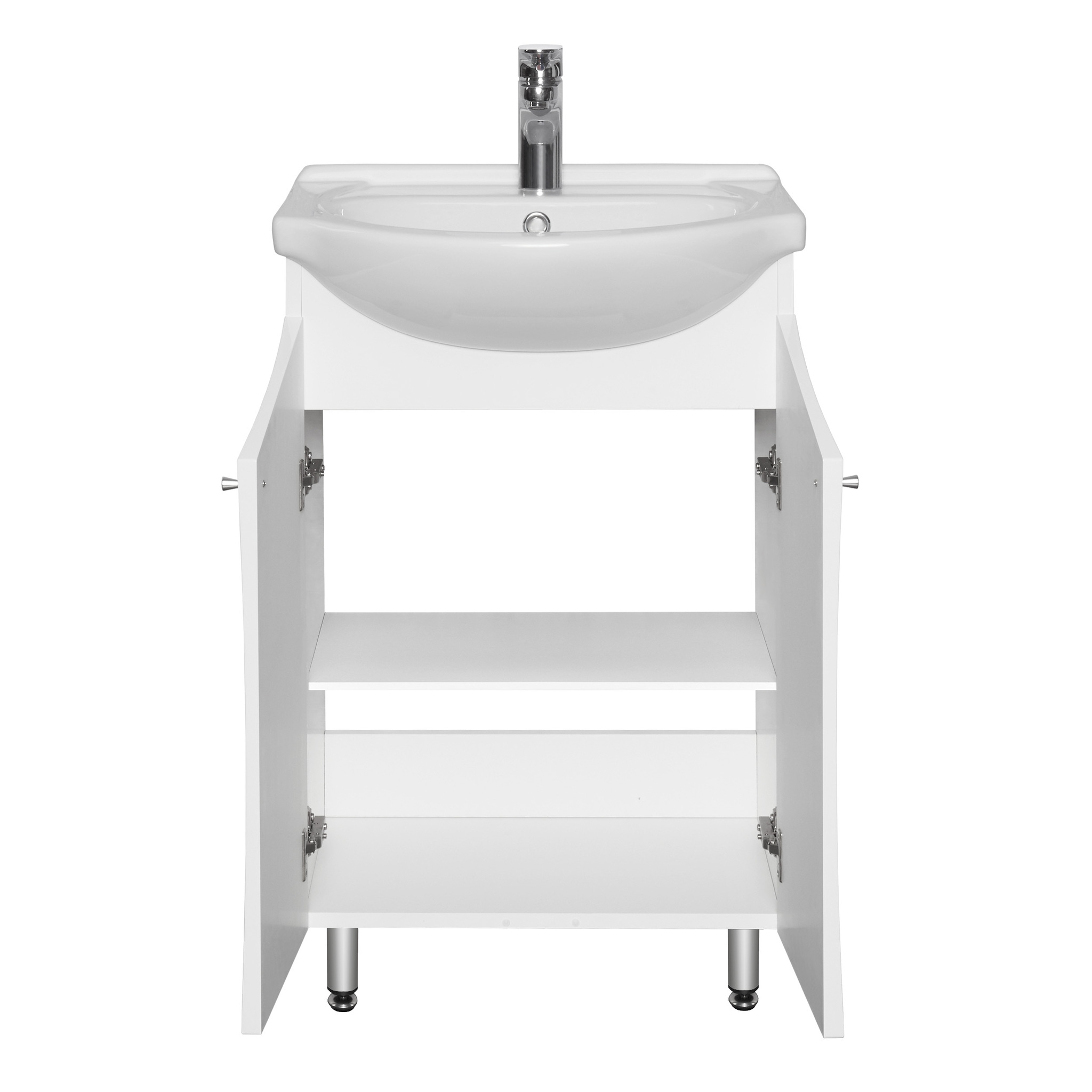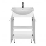 Стильная и функциональная тумба под раковину Джимми 57 У от AQUATON — оптимальное решение для ванных комнат со скромными габаритами. Несмотря на компактные размеры тумба предлагает достаточно места для хранения. Изюминка модели — скошенные под углом распашные дверцы с доводчиками, которые обеспечивают плавное закрывание. Простая и лаконичная модель на 4 ножках, регулируемых по высоте, изготавливается из влагостойкой ЛДСП и МДФ и окрашена полиэфирной краской ультрафиолетового отверждения с высокой степенью глянца.