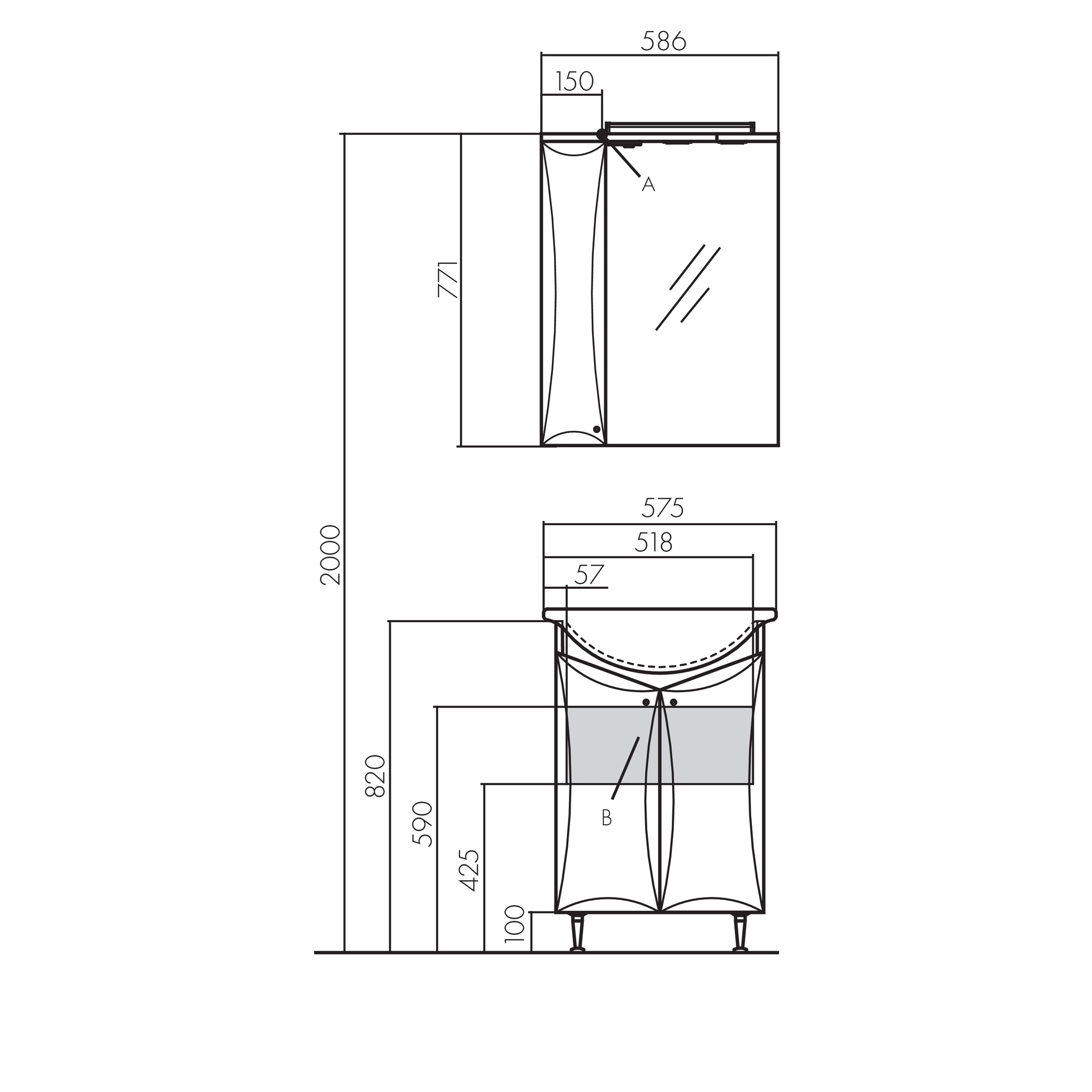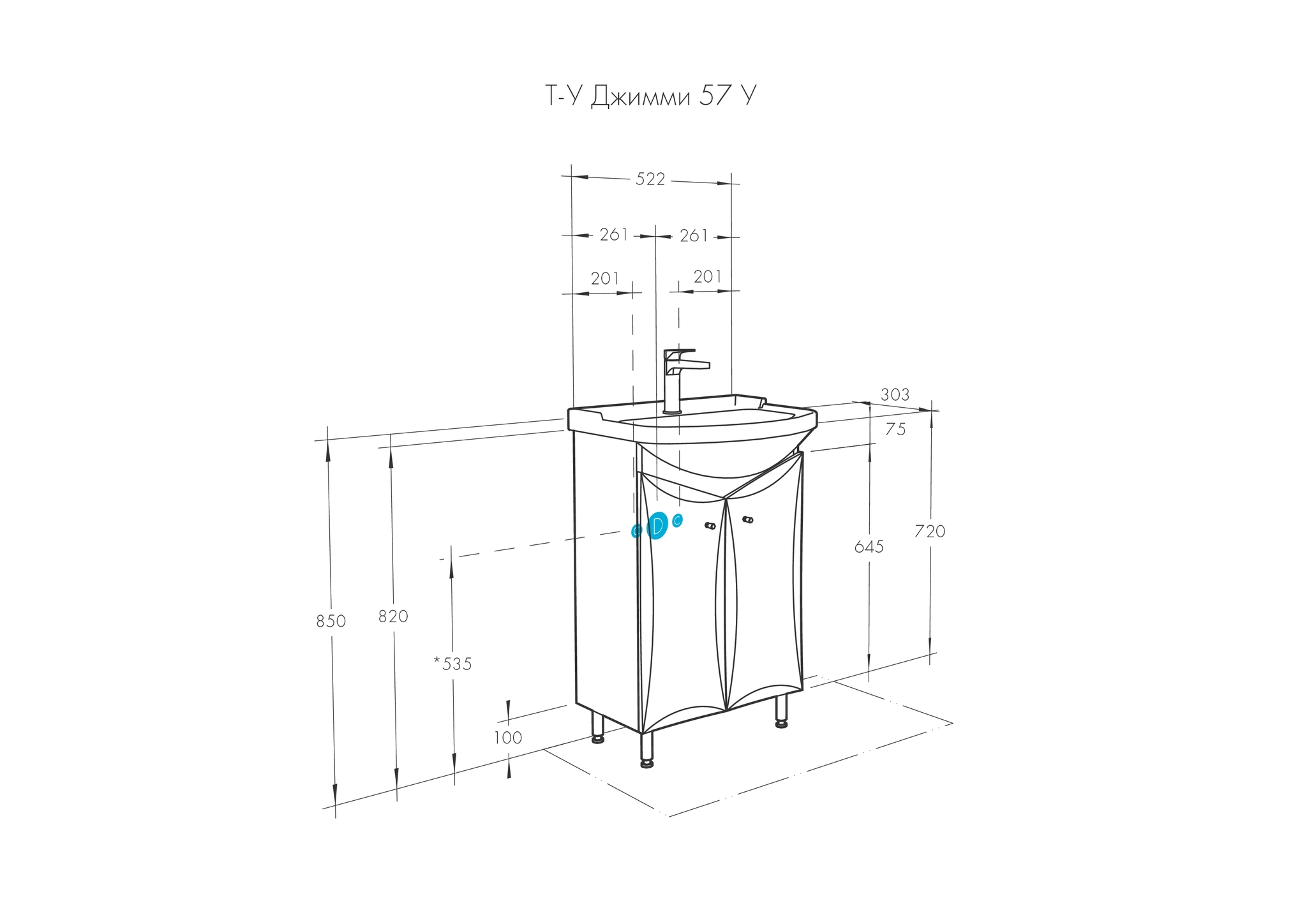 Комплект поставки: • Тумба • Раковина с декоративной накладкой на отверстие перелива в цвете хром, 1 отверстие под смеситель,