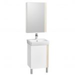 Лаконичная тумба Капри выполнена в современном дизайне: сочетание белого глянца (ВЛДСП в покраске) с древесным акцентом в цвете дуб верона (ламинированное влагостойкое ДСП). Все детали тумбы выполнены из влагостойкой ламинированной ДСП, предназначенной для использования в условиях ванной комнаты. Благодаря специальной обработке торца фасада под углом, открытие производится за створку. Универсальный функционал тумбы – распашная створка, за которой расположена полочка. Регулируемые опоры в комплекте.