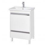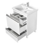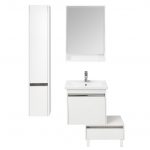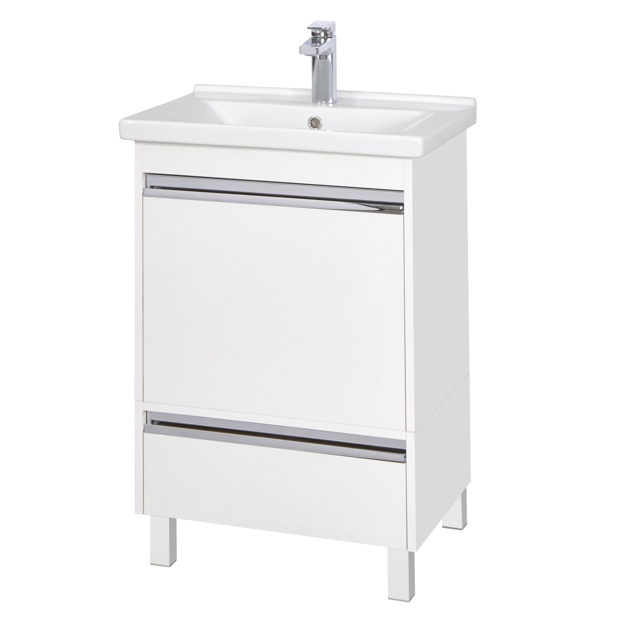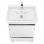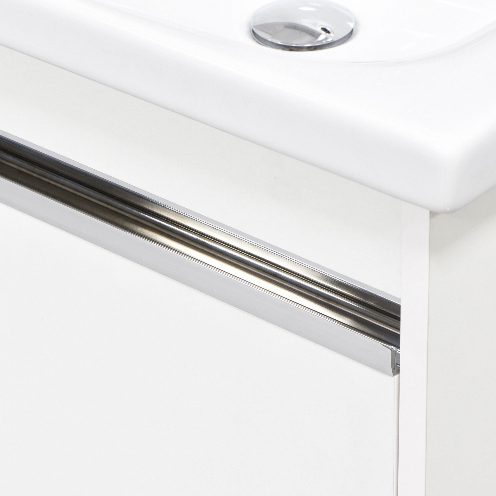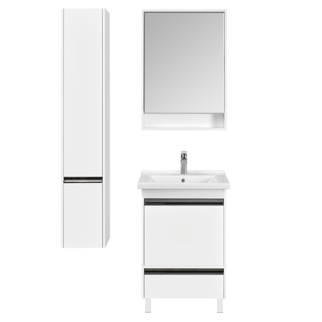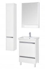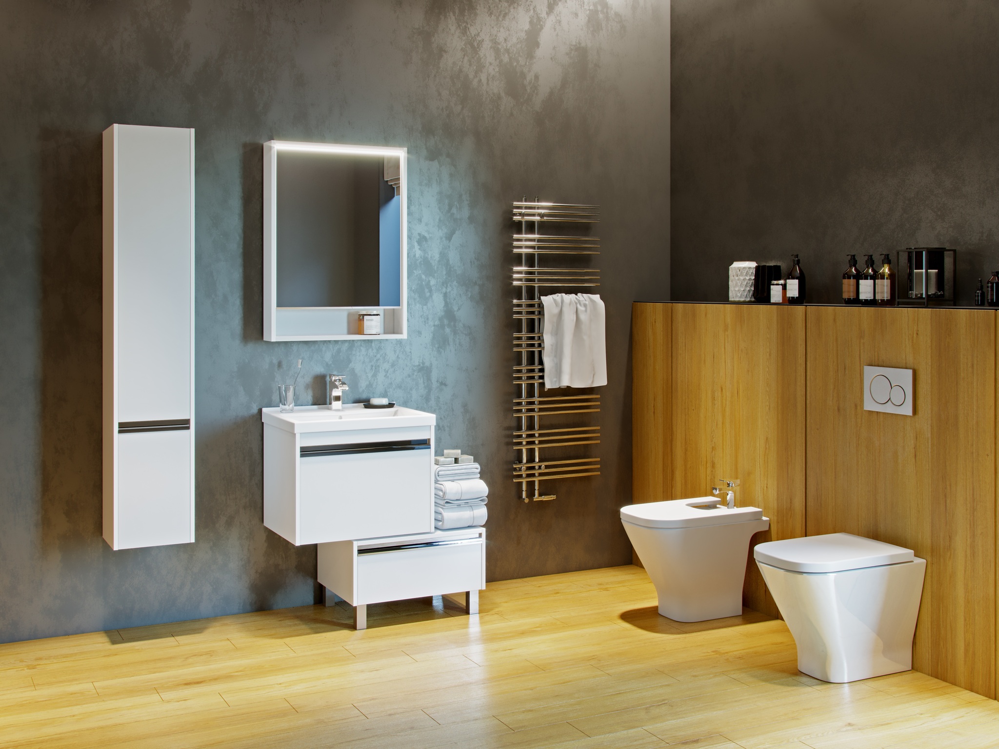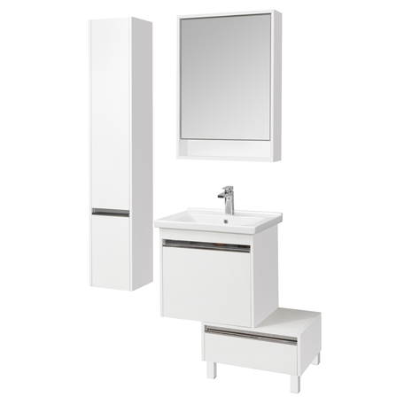 Тумба под раковину Капри 60 от AQUATON в цвете белый глянец отражает современные тенденции в дизайне мебели для ванных комнат: минимализм в чистом виде с простыми и понятными формами, отсутствие лишних деталей, удобные профильные ручки, интегрированные в фасад. Корпус и фасады выполнены из влагостойкой ЛДСП и покрыты глянцевой краской. Несмотря на компактные размеры, тумба предлагает удобную систему хранения, что особенно актуально для небольших ванных комнат и санузлов. Модель оборудована двумя вместительными ящиками. Комфорт и удобство при использовании гарантируют направляющие с доводчиками и интегрированная система плавного закрывания. В качестве дополнения к подвесной тумбе предлагается дополнительный комод на ножках, который может быть установлен как непосредственно под тумбой, так и со смещением влево или вправо.