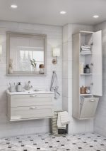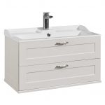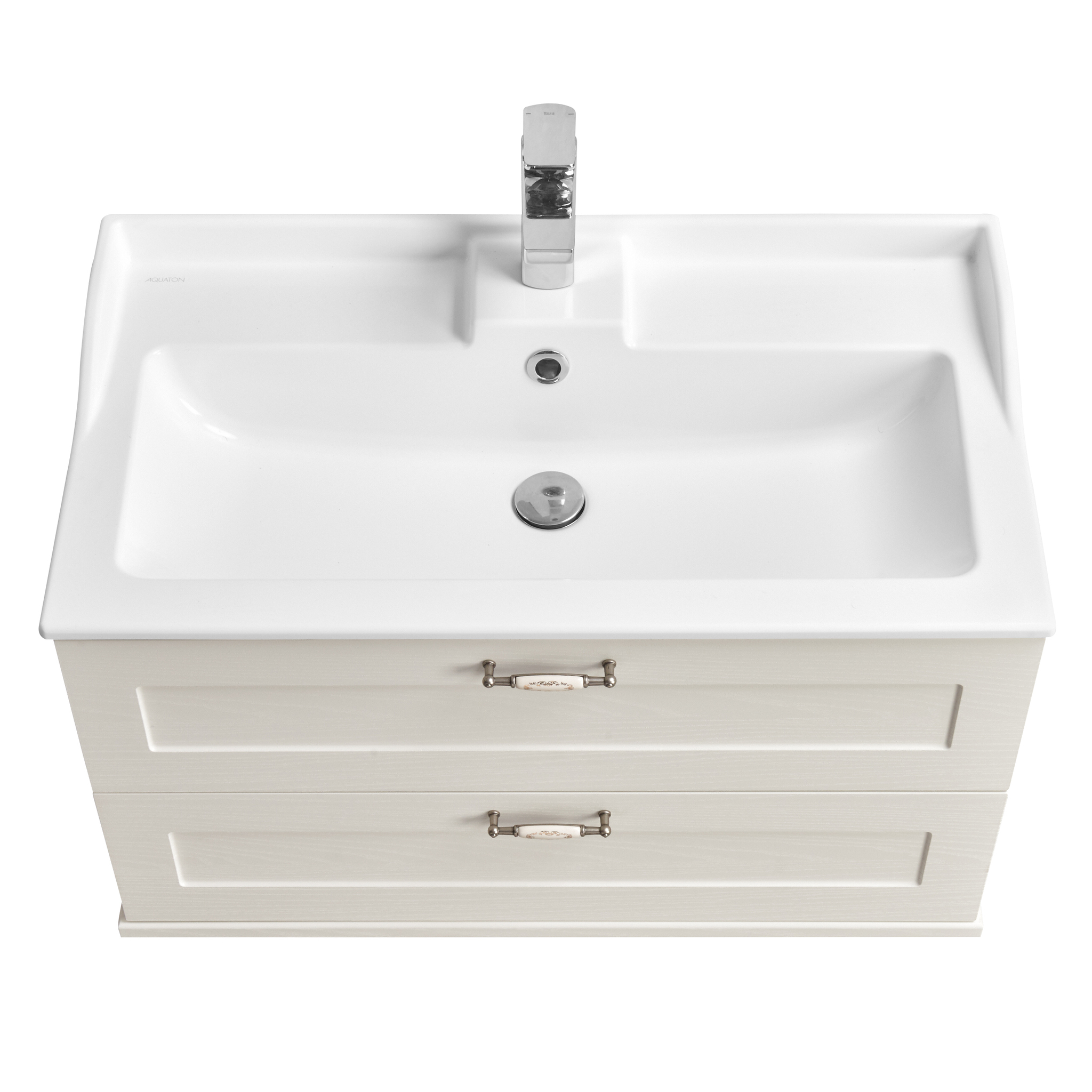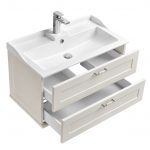 Широкая подвесная тумба под раковину Леон 80 от бренда AQUATON в стильной отделке белый дуб создана для любителей классического дизайна, но при этом предпочитающих современные материалы. Корпус и фасады выполнены из высококачественной МДФ, покрытой матовой пленкой. В тумбе установлены два ящика с системой плавного выдвижения и доводчиками, которые обеспечивают удобство при использовании. Классическую эстетику модели подчеркивают изящные ручки от европейского производителя.